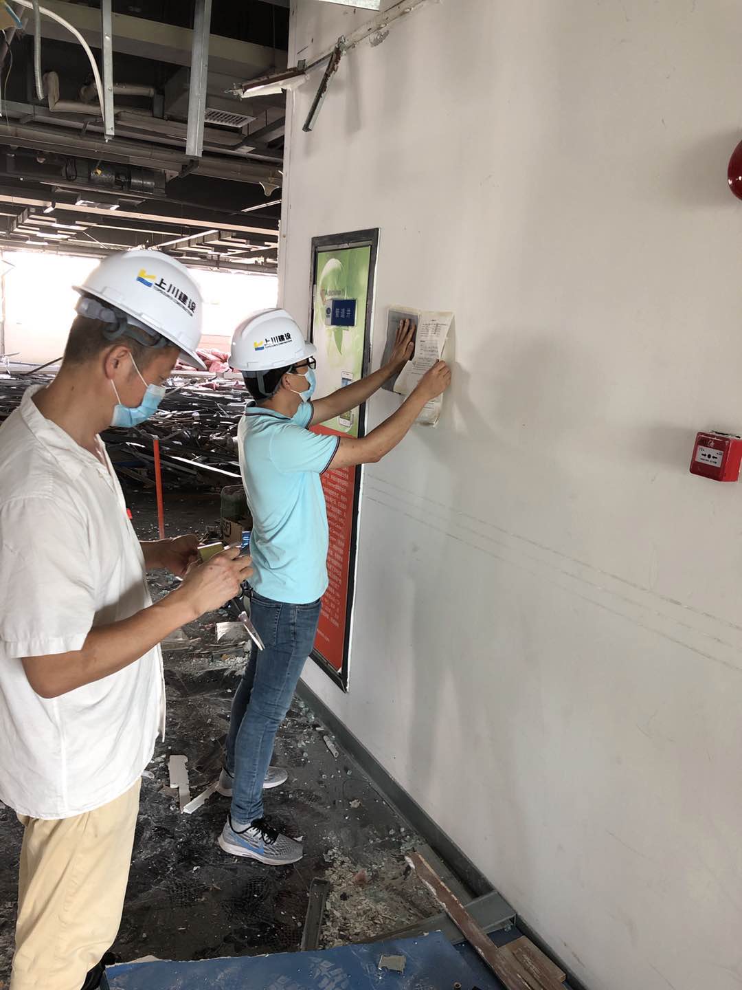 上川工作人員記錄下改造前的施工現場,測量數據,檢查進場材料,確保測量數