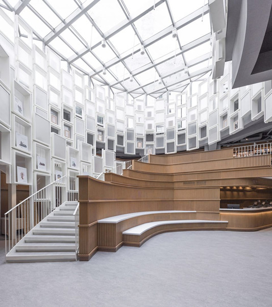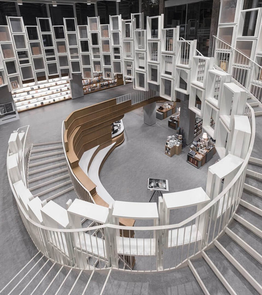 由意大利建筑設計公司 Kokaistudios 創造充滿設計感的筑蹊生活書店,位于浙江省第二大城市寧波市中心,1844 藝術生活中心廣場地下,建筑第一眼就已經讓人留下深刻印象,由扇形玻璃排列出現代化外觀,也呼應內部 L 型內部半透明壓克力板、水泥地面的原色低彩。